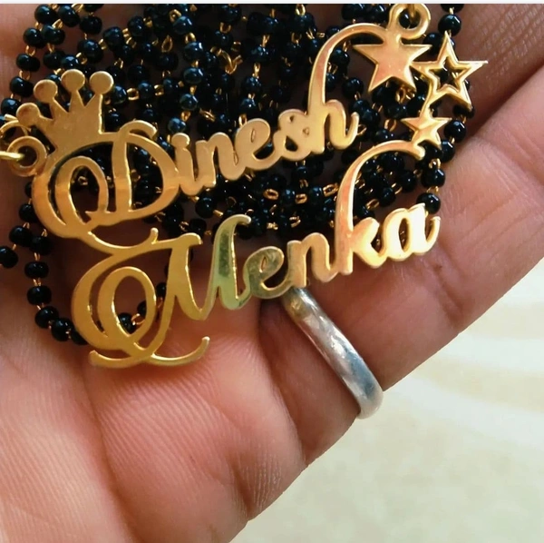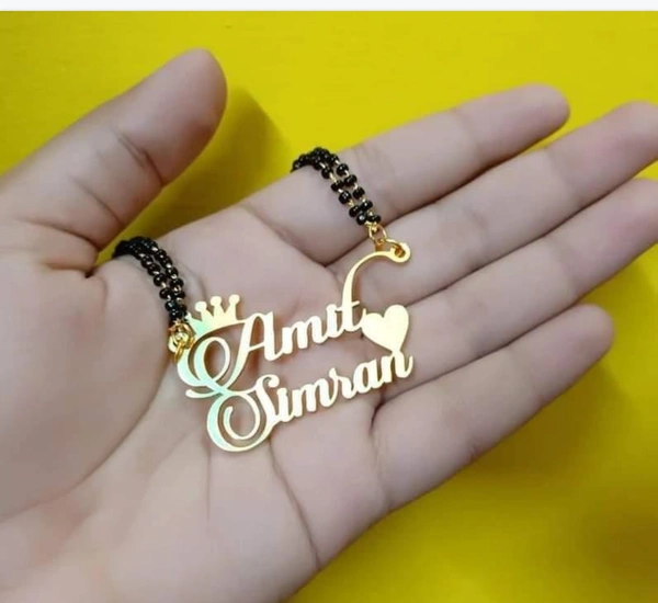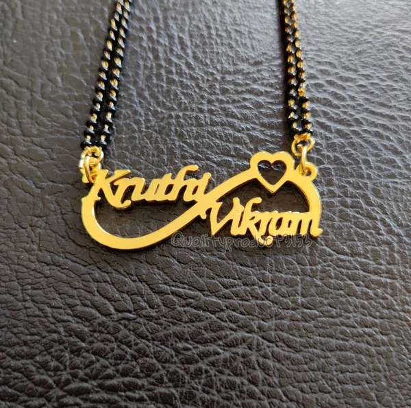 Brand: YAM ARTSYAM ARTS / Customized/Personalized Infinty Double Name Pendant with Heart Mangalsutra/Necklace/Mangalsutra With Ur Name Or Love One Name With 24k Gold Plating and Laser Finish