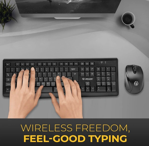 LAPCARE L901 Wireless Keyboard and Mouse Combo with Auto Sleep || Wireless Membraned Keyboard and 1200 DPI Mouse Combo (Black)