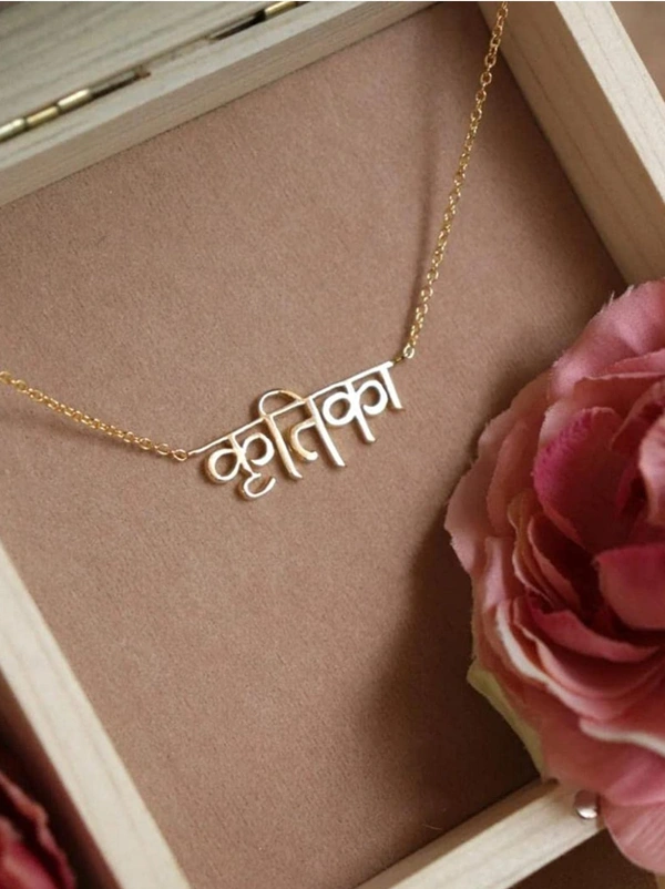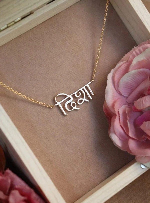YAM ARTS / Customized/Personalized Single Hindi Name Necklace/Pendant/Keychain/Mangalsutra Unisex Adult 24K Gold Plating And Laser Engraved Finish (Gold & Silver)